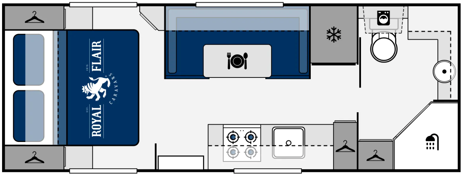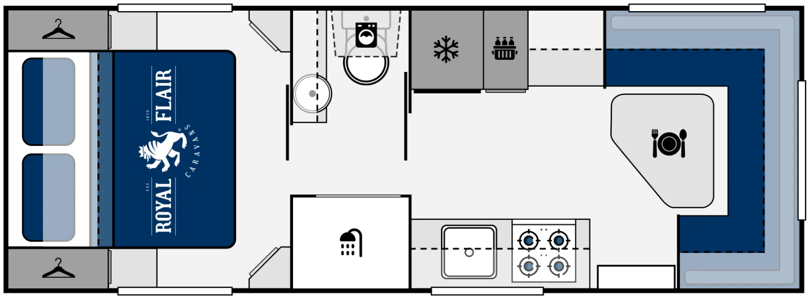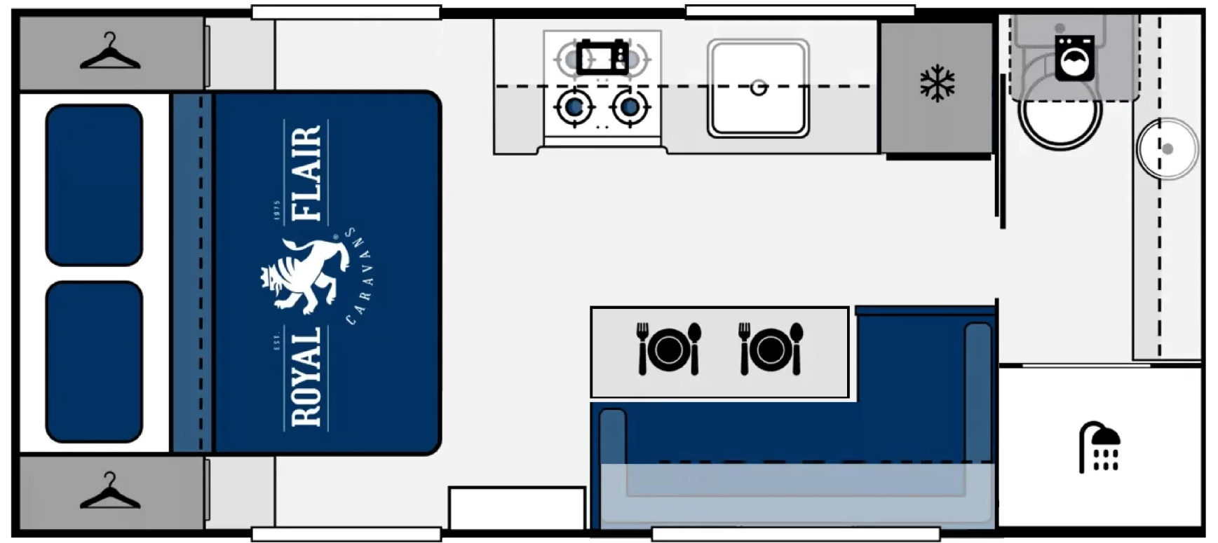 Designed for comfort and convenience, Royal Flair caravans feature premium interiors, smart layouts, and high-end finishes, blending style with functionality for the ultimate travel experience.